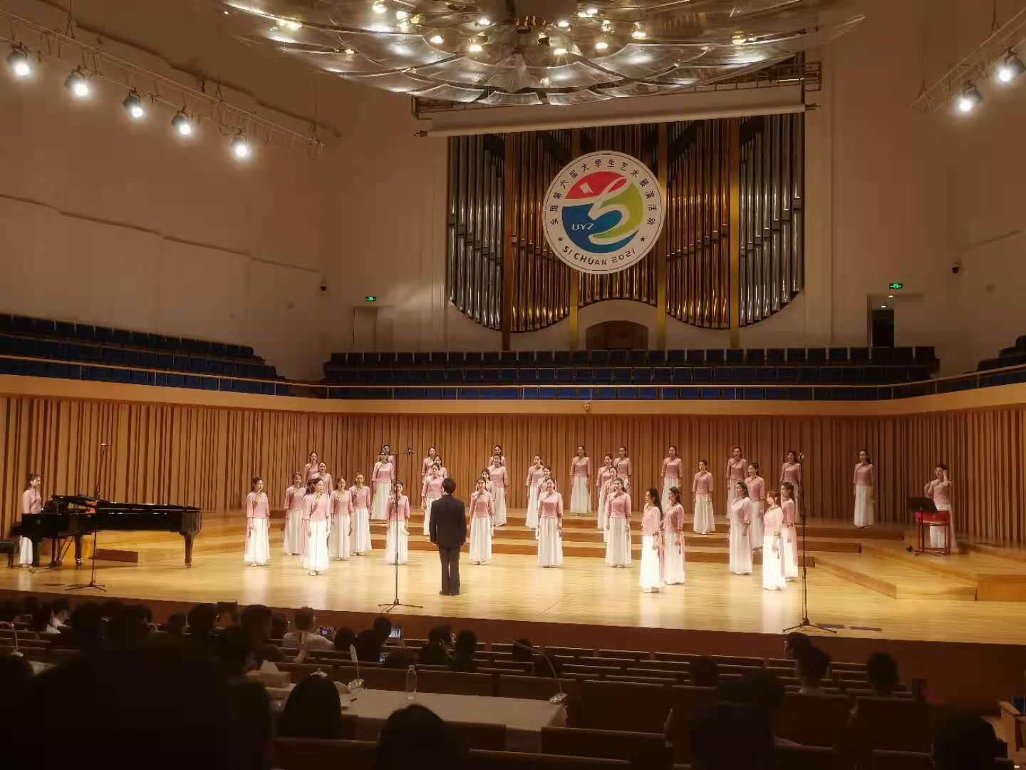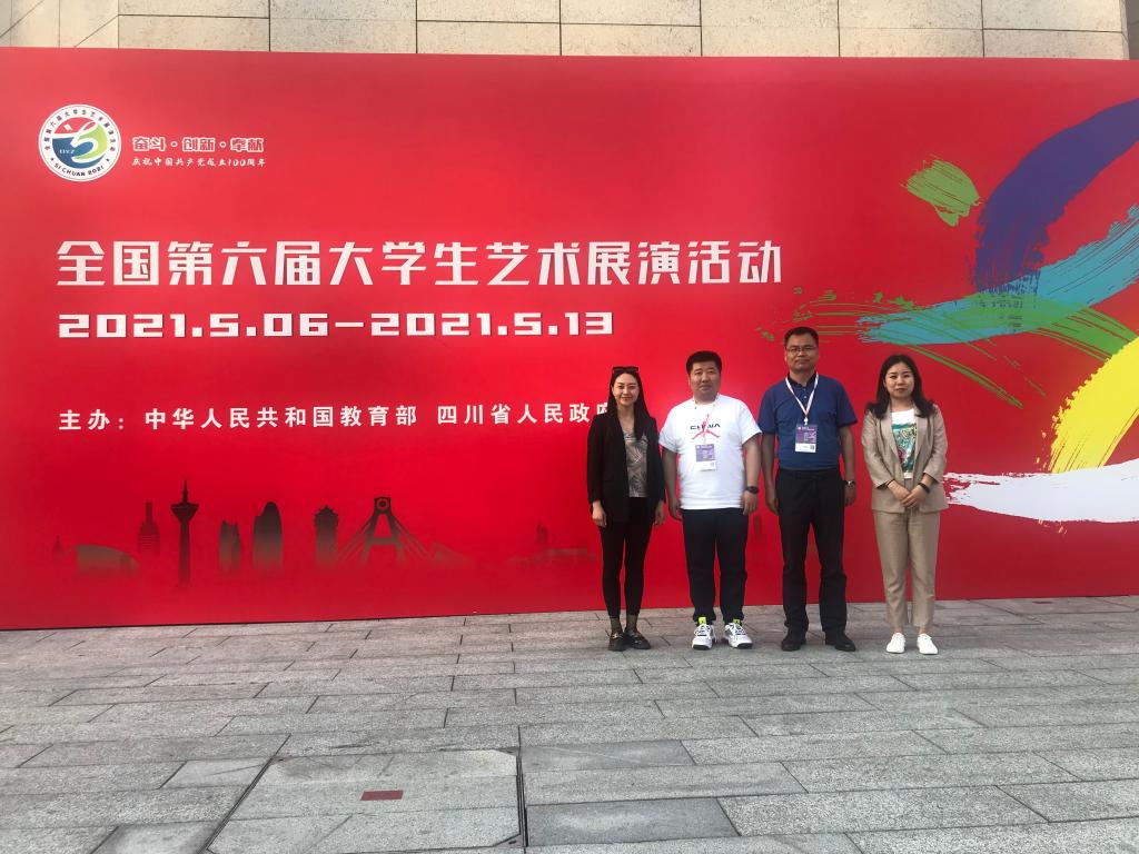 56日,以奋斗·创新·奉献为主题的全国第六届大学生艺术展演活动将在四川成都开幕。本届艺术展演由教育部和四川省人民政府主办,四川省教育厅和成都市人民政府承办。大艺展现场展演共有31个省(区、市)、新疆生产建设兵团和香港、澳门特别行政区,共34个地区198所高校264支代表队的6800余名师生参加现场展演。56-9日,Beat365中文官方网站副院长成党伟带领专业教师肖剑、李玉娇、鄢志莉观摩了合唱、舞蹈、艺术工作坊及公共艺术作品展。