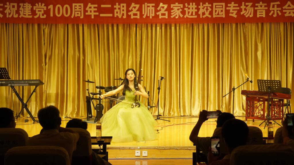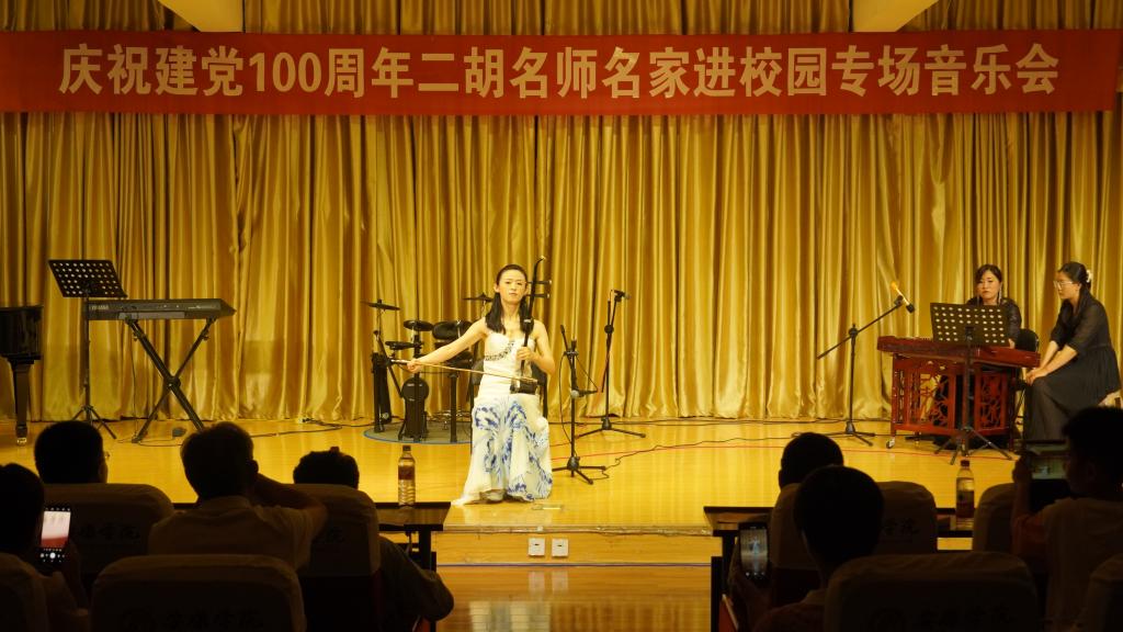610日晚,由陕西民族管弦乐学会二胡专业委员会和Beat365官网Beat365中文官方网站联合主办的“庆祝中国共产党成立100周年暨秦派二胡名师名家进校园Beat365中文官方网站专场音乐会”在Beat365官网江北校区1401演艺厅成功举办,Beat365官网师生200余人聆听了音乐会。