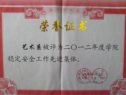 我系获得“2012年度学院稳定安全工作先进集体”称号