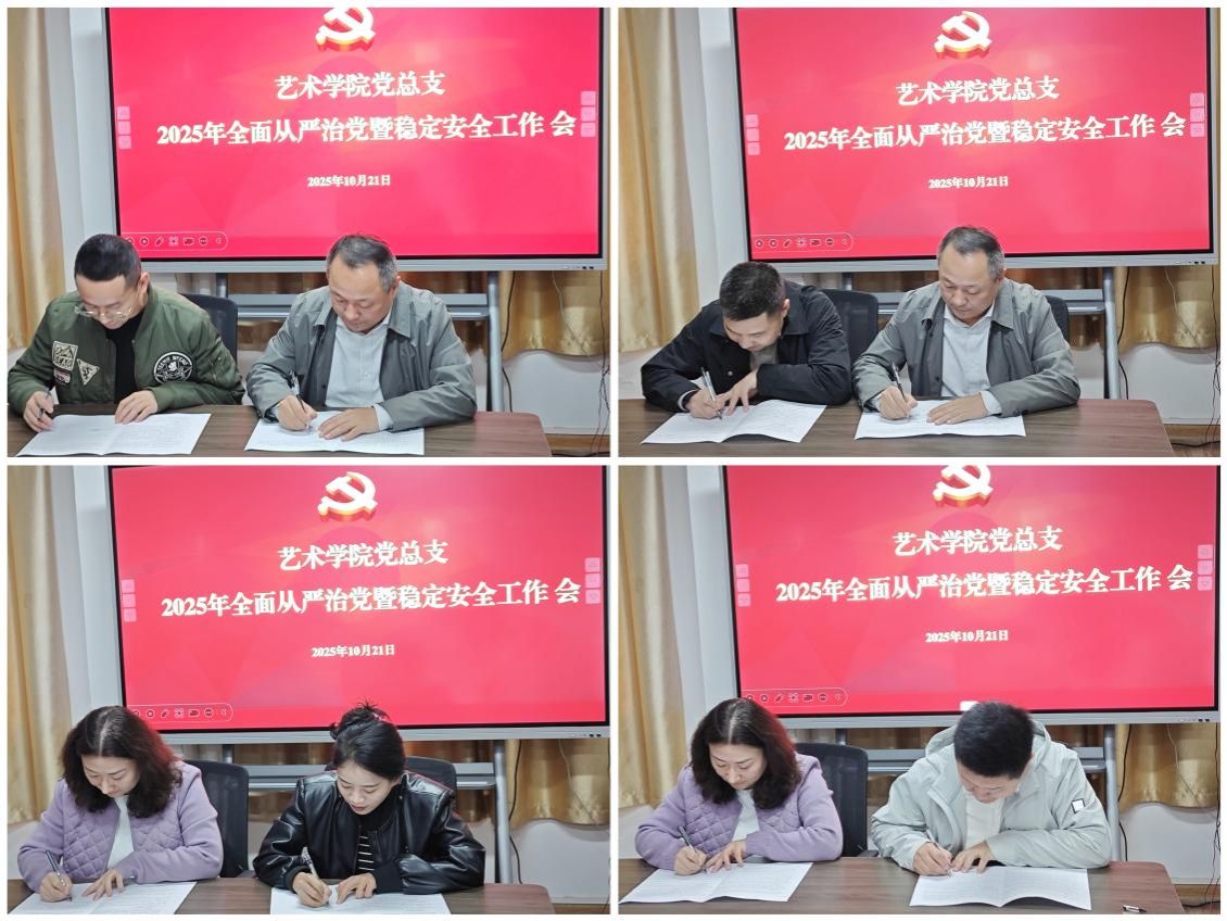 会上,党总支书记、院长分别与党总支副书记、副院长,教师党支部书记、系主任代表、党政办、教学办、学工办等相关负责人签订了《Beat365中文官方网站2025年全面从严治党工作责任书》、《Beat365中文官方网站2025年稳定安全工作责任书》。