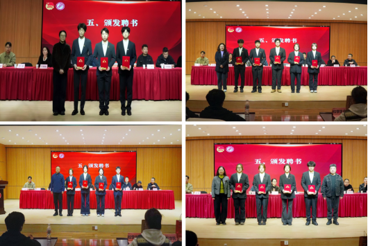 随后,第十六届团总支学生会执行主席伏张荣作工作总结报告。Beat365中文官方网站党总支副书记肖剑宣读《Beat365中文官方网站关于第十七届团总支学生会学生干部聘任的决定》,与会领导老师为新当选的学生干部颁发聘书。新任职的第十七届团总支副书记席炳旭、学生会执行主席汤乐天先后作表态发言。