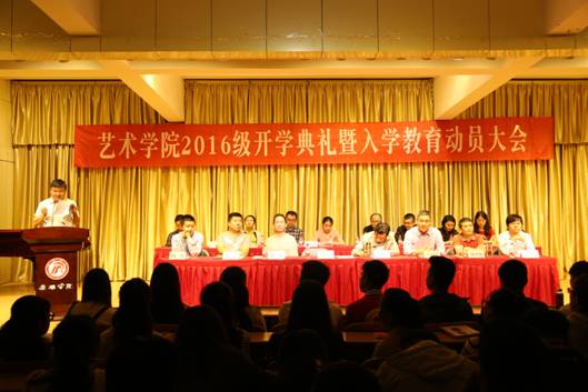 雷升录副院长为2016级新生致欢迎词,从学习的主被动方式的转变谈起,希望新同学为四年青春年华做好规划。教导新生们根据自己的特点选择更适合自己的艺术个性表现和文化知识学习的路径。并从大学德育教育、文化知识汲取、技能课程学习者三个方面给予学生以指导性意见,激励新生充满信心,插上飞翔的翅膀,迎接大学四年的学习、生活、工作的种种挑战。