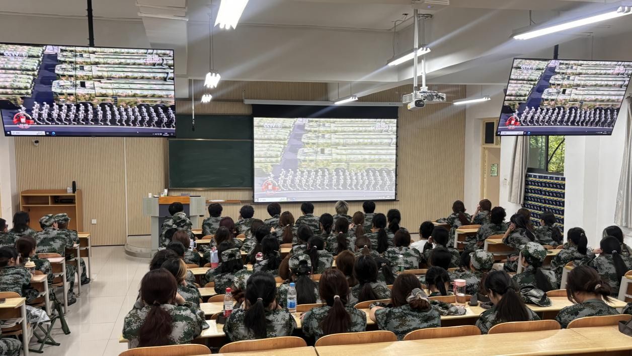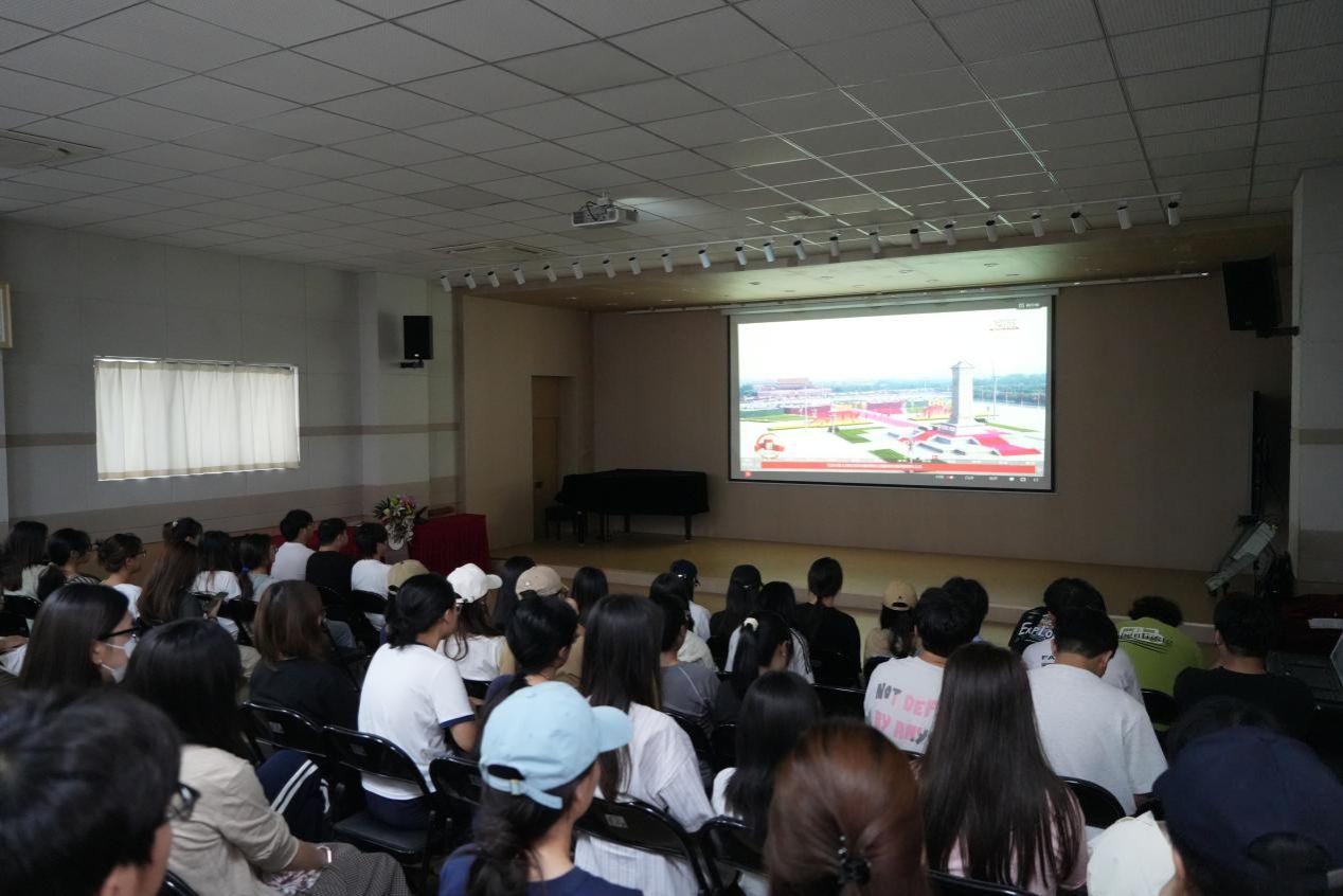 9月3日上午9:00,Beat365官网分别在2208会议室、1401演艺厅、2415活动室及教室举行了“组织师生观看九三阅兵 同上一堂爱国主义教育思政课”活动。党总支书记张慧、院长李景林、党总支副书记肖剑、副院长李磊、三办主任、团总支书记、各支部书记及委员、工会主席及委员、各系(教研室)主任、全体辅导员、无课教师代表及300余名学生,通过直播观礼与研讨交流相结合的形式,共上一堂生动的思政课。