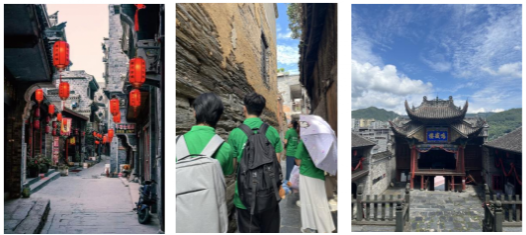 实践团队抵达蜀河古镇后,参观了杨泗庙、黄州会馆、古商铺与钱庄旧址、骡马古道、清真寺、水文石刻,电报局旧址等众多遗址,通过与传承人的交流了解旬阳传统木刻版画,它是孕育于秦巴汉水地域文化,承载着数百年来当地的历史记忆与民俗风情,2022年被列入陕西省第七批非物质文化遗产名录。