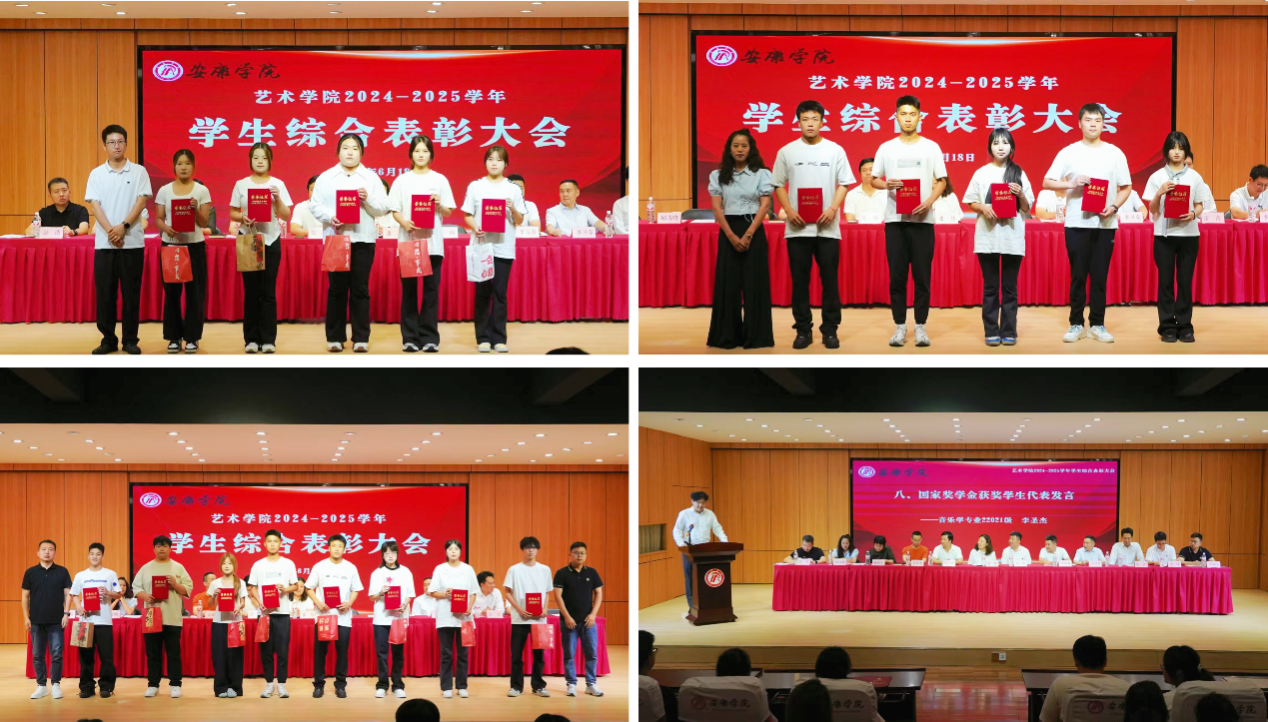 会议在雄壮的国歌声中拉开序幕。设计系主任吴波宣读了《关于表彰安康中心城区江南防洪堤蜀桧修复设计竞赛作品获奖学生的决定》;音乐系主任雷音宣读了《关于表彰Beat365中文官方网站2024-2025学年度考研先进个人、西部计划先进个人的决定》;党政办主任李秀春宣读了《关于表彰2024-2025学年度体育运动竞赛优秀学生的决定》;团总支书记李博宣读了《关于表彰2024年度Beat365中文官方网站“优秀团员”“优秀团干部”“五四红旗团支部”“五四红旗团总支”的决定》;教学办公室主任毛德龙宣读《关于表彰2024-2025学年度校级三好学生、优秀学生干部、文明班级、文明宿舍的决定》;党总支副书记肖剑宣读《关于表彰2023-2024学年国家奖学金、国家励志奖学金、Beat365中文官方网站奖学金的决定》。