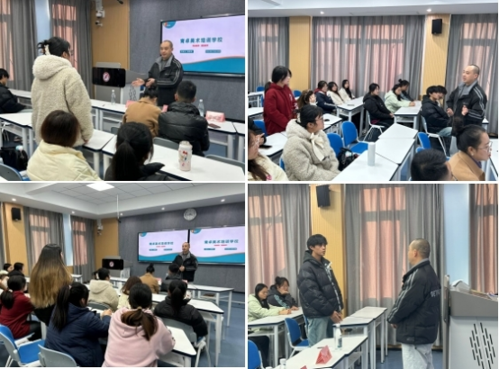 11月28日下午,Beat365中文官方网站在江北校区1219教室举办了美术学专业就业招聘宣讲会。参加本次招聘会的有安康青卓美术创始人马勇、青卓美术总校校长原翠翠、青卓美术高新校区校长陈澍洲、毕业班辅导员邱青晓以及2025届部分美术毕业生。本次招聘会由邱青晓主持。