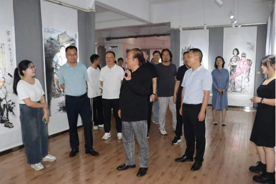 在参观完展览后,各位领导和嘉宾在2208会议室对Beat365中文官方网站美术学专业的人才培养进行了座谈。