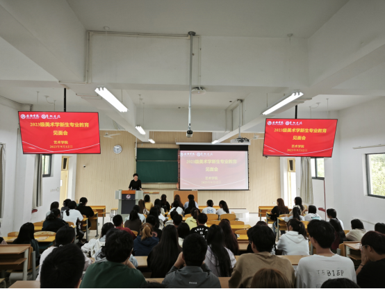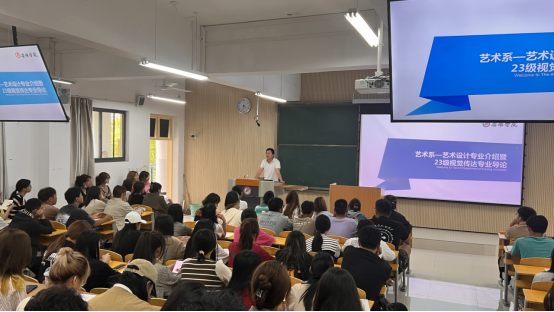 艺术设计系主任吴波老师、美术系主任杜敏老师分别就各学科发展历史、培养目标、课程设置、师资力量、就业前景等向新生们做了全面介绍,并对新生的未来规划提出了有益建议,送出暖心寄语,迅速拉近了师生距离。现场气氛活跃,掌声不断,同学们纷纷表示对专业的学习充满了期待。