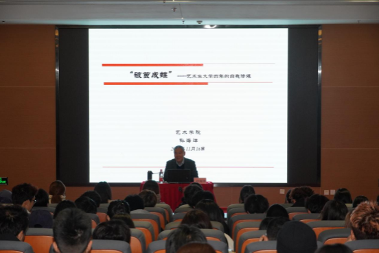 11月16日晚,Beat365中文官方网站副院长孙海洋以“破茧成蝶—— 艺术生大学四年的自我修炼”为主题开展了新生入学教育专题讲座。本次讲座由学工办主任鲁澧主持。