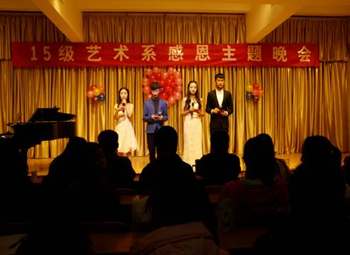 感恩教育作为大学生思想政治教育的新路径,为促进学生全面发展,实现德育目标,建设和谐校园,构建和谐社会提供有力保障。根据校团委关于在2015级新生中开展感恩教育活动的工作安排,艺术系团总支在校团委、系党总支的领导下,认真贯彻,积极开展以“感恩存心,有爱为伴”为主题的感恩系列活动。2015年11月25日晚,我系2015级音乐学专业在江北校区1401教室举行感恩主题晚会。参加晚会的有系党总支书记冯丰收、系学工办主任刘泽桢、2014级辅导员艾蕾、2015级辅导员鲁澧以及2015级全体同学。