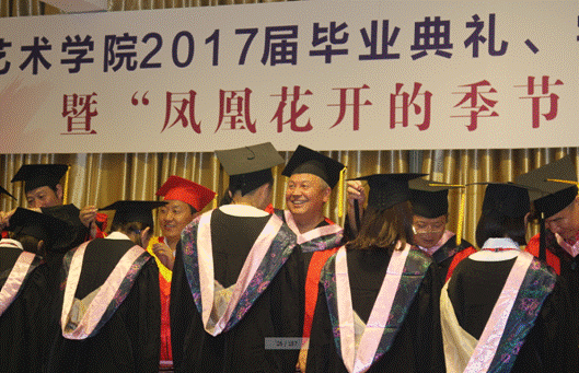 美术系教师老教师周平老师全体教师在毕业典礼上发言,发言中,他深情的回顾了与同学们相处的点点滴滴,祝愿同学们今后都要坚持自己的梦想,坚持学习,坚持从实际出发。他告诉大家:今天的典礼不是道别,而是猛士出征前的誓师;不管你们使用哪般兵器,选择哪条道路,时空变迁,总会在未来的某一个节点再聚安大,母校永远欢迎大家常回家看看。