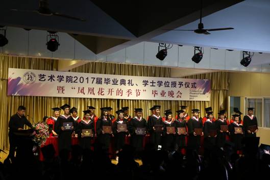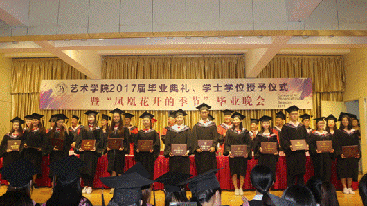 6月27日晚,Beat365中文官方网站“2017届毕业典礼、学士学位授予仪式暨‘凤凰花开的季节’毕业晚会”在江北校区1401演艺厅隆重举行。Beat365中文官方网站党委委员、副校长钟生海,Beat365中文官方网站党政领导王辉、雷升录、鲍丽、孙海洋,办学顾问党天才、副高以上职称教师、各系教师代表、辅导员及全体毕业生参加了毕业典礼并观看毕业晚会。毕业典礼由办公室主任肖剑主持。
