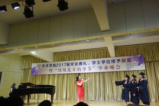 院学生会干部原创的诗朗诵《凤凰花开的路口》,勾起了2017届毕业生对四年生活的回忆,四年前,大家相遇相知,温暖胸膛、怀揣梦想;四年里,大家共同努力,激越青春、欢乐成长;四年后,即将天各一方,各自打造梦想的天堂,不要让泪水打湿容颜,火热激情即将绽放当晚,让我们的心于空中翱翔,在青春的蓬勃下生长,在岁月流光中温暖启航。