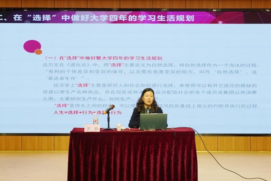 黄娟以《为学为事为人:中国式现代化进程中新时代青年的使命担当》为题进行授课,课程以当代青年身处于什么时代进行导入,引发同学们的思考,她带领同学们一起回顾了不同历史时期党团结带领人民为现代化而奋斗的光辉历程和作出的重大贡献。围绕新时代青年的使命担当,从在选择中做好大学四年学习生活规划做起,以坚定的理想信念和勇往直前的决心投身到自己的学习中去,在实践中不断砥砺前进的力量,肩负起明天的使命。