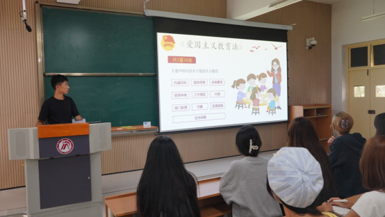 随后,团总支副书记柳扬同学带领全体团员青年共同学习了《爱国主义教育法》,同学们全神贯注,认真学习关于爱国主义教育法的解读。法律明确了爱国主义教育的内容涵盖国家历史、文化传统、民族精神等多个方面,让同学们深刻认识到祖国的伟大和自己肩负的责任。同时,法律也规定了学校、家庭、社会等各方面在爱国主义教育中的职责,为形成全方位、多层次的爱国主义教育格局提供了有力保障。这部法律犹如一座灯塔,为新时代的爱国主义教育指明了方向。通过学习,同学们了解到爱国主义教育的重要意义、目标任务以及具体实施方法。