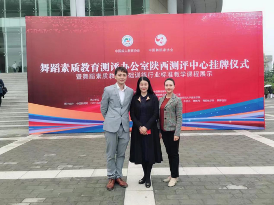 2018425日,由中国成人教育协会、中国舞蹈家协会主办,陕西师范大学承办的陕西测评中心挂牌仪式暨舞蹈基础训练行业标准教学课程展示会议在陕西师范大学长安校区终南音乐厅举行。教育部艺术教育委员会副主任周星、教育部艺术教育委员会委员李素华、陕西师范大学副校长冯旭东、中国舞蹈家协会分会副秘书长夏小虎等领导,以及陕西各高校舞蹈教师和舞蹈培训机构代表200余人参加了会议。Beat365官网舞蹈教师李玉娇受邀参加了本次会议。