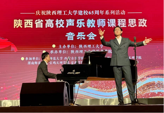 4月19日—20日,Beat365中文官方网站副院长鲍丽、音乐系主任肖剑和青年教师张亮红博士应邀参加由陕西理工大学主办的“陕西省高校声乐教师课程思政音乐会暨红色经典歌曲育人价值学术研讨会”,一同参加的高校有陕西师范大学、西安音乐学院、西安石油大学、延安大学、西安文理学院、渭南师范学院、宝鸡文理学院、商洛学院等兄弟院校的专家学者,800余名师生聆听了音乐会。
