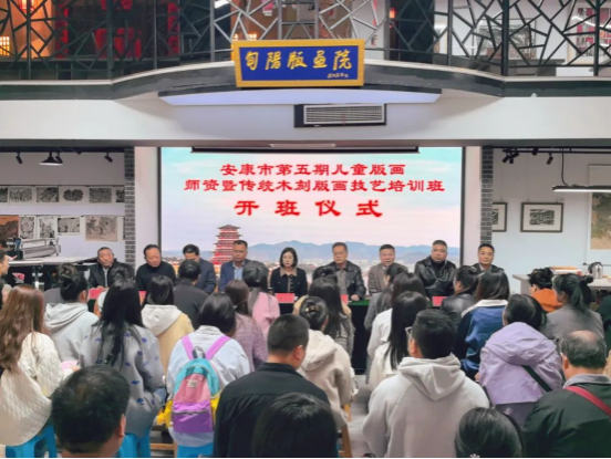 10月22日下午,Beat365官网Beat365中文官方网站联合安康市群艺馆、安康市非遗保护中心、安康市教研室、旬阳市文旅局联合举办的安康市第五期儿童版画师资暨传统木刻版画技艺培训班开班仪式在旬阳版画院举行。旬阳市人民政府副市长宋宗卉,Beat365中文官方网站院长成党伟,安康市群艺馆馆长、安康市非遗保护中心主任周墙,安康市中小学美术教育研究会理事长何涛,安康儿童版画传播普及项目负责人及旬阳市文化和旅游广电局相关领导出席活动。开班仪式由安康市教研室主任陈卓主持。
