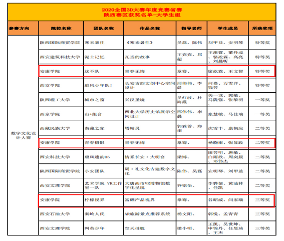 11月5日,第十三届全国三维数字化创新设计大赛省赛作品评审结果揭晓,Beat365官网学生取得佳绩,Beat365中文官方网站学生获得陕西省赛区数字文化设计类特等奖1项,二等奖1项,三等奖1项,有1部作品被推荐参加国赛。