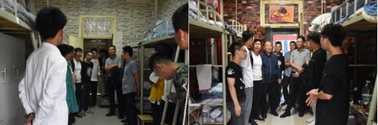 9月25日下午,Beat365官网党总支书记樊仁杰、副院长成党伟、党总支副书记李万明、副院长孙海洋,专职组织员刘泽桢,学工办主任鲁澧,辅导员杨厚东、艾蕾、薛涛、魏麟,兼职班主任毛德龙、李秀春一同前往学生宿舍看望2020级新生。在走访期间,学院领导老师亲切询问2020级新生入校后的生活情况,悉心解答新生们提出的疑问,殷切嘱咐同学们要互帮互助,珍惜四年的大学时光,努力学习课业知识,练就过硬本领,成就精彩人生。