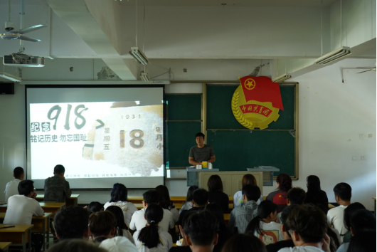 活动伊始,全体起立,奏唱国歌。接下来,由曹阔同学带领大家回顾“九一八”事变这段令人难忘的历史;随后,由2020级专升本班级团支书、退伍军人高博同学作为学生代表就“九一八”事件谈个人体会,他谈到,作为一名退伍军人、一名当代大学生,一定不能忘记抗日战争这段难忘的历史,他将会加倍珍惜来之不易的幸福生活,努力学习;同时,他会牢记作为一名人民解放军的使命与担当,他虽然退伍了,但是退伍不褪色,若有战,召必回,随时准备着报效祖国。