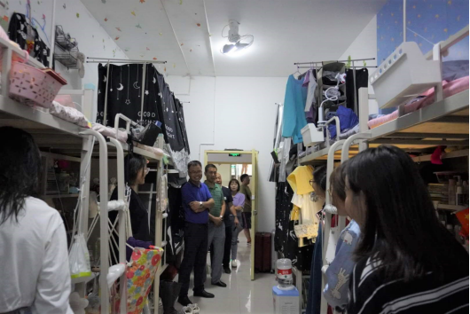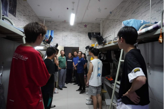 为深入了解学生返校后学习生活情况,确保学生返校后有一个安全稳定的学习生活场所。8月23日晚上7点,Beat365中文官方网站党总支书记樊仁杰、副院长成党伟、党组织副书记李万明带领辅导员杨厚东、艾蕾、魏麟、薛涛到学生宿舍看望返校学生。