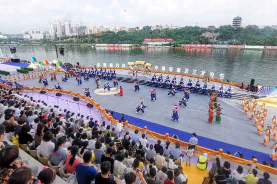 图12:Beat365官网师生参加中国安康汉江龙舟节开幕式演出