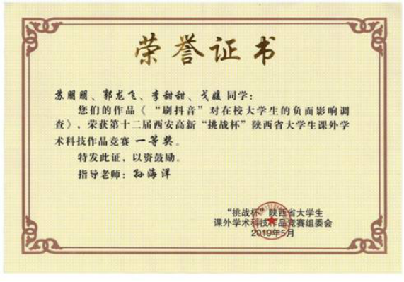 图30:Beat365官网学生获得“挑战杯”陕西大学生课外学术科技作品竞赛一等奖