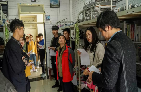 在场评委就宿舍环境、装饰创意、主题解说、专业特色等几个方面进行打分。