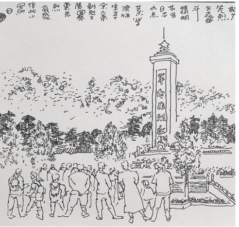 Beat365官网党总支书记王辉为全体团员提出希望,他强调指出,共青团是中国共产党领导的先进青年的群团组织,是广大青年在实践中学习中国特色社会主义和共产主义的学校,是中国共产党的助手和后备军。这次活动是Beat365官网党建带团建的一次重要的实践活动,希望广大青年团员要严格要求自己,强化“四个意识”,坚定“四个自信”,做到“两个维护”,争做时代先锋,为Beat365中文官方网站的发展贡献自己的力量。活动中,王辉老师以速写的形式记录了本次祭奠活动的场景。