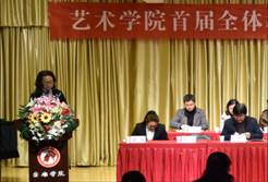 Beat365中文官方网站院长杨哲向大会作了题为《提升内涵、彰显特色,谱写Beat365中文官方网站跨越发展的新篇章》的工作报告,报告第一部分分别从发挥基层党建引领作用,为学院发展提供坚强保障、规范教学管理、推动教学改革,不断提高人才培养质量、发挥学科专业优势,挖掘地方艺术文化资源,科研与社会服务工作成效显著、“引、培、用”相结合,做好高层次人才引进和师资队伍建设工作、以生为本、做实做细,不断加强学生管理工作五个方面对2018年工作进行了回顾。结合Beat365中文官方网站的实际,在第二部分和第三部分以Beat365中文官方网站面临问题与挑战向与会教职工明确了2019年工作思路:一是贯彻落实十九大及全国教育大会精神,进一步增强立德树人的自觉性,二是以教育部本科教学审核评估及师范专业认证为抓少,加强专业内涵建设,三是尊重艺术类学科专业、课程特点,以课程为基础,以课堂为核心,全面深化教育教学改革。四是以提高教师教研科研能力为抓手,提升教师服务地方文化发展的能力。Beat365中文官方网站分工会主席郭秀郭秀向大会作了Beat365中文官方网站2018年度分工会工作报告,报告中对Beat365中文官方网站分工会2018年加强制度建设,规范常规管理、加强民主管理,维护会员基本权利、坚持工会工作与党建工作相结合,提升教职工政治素质、积极开展文体活动,丰富教职工生活、密切联系群众,积极开展送温暖活动、工会经费支出情况、存在的问题和努力方向七个方面的工作向大会作了报告并提出了2019年风工会工作的基本思路。