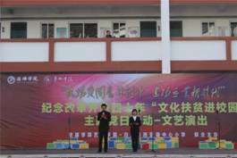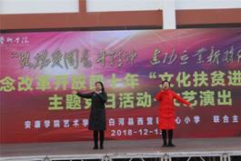 为纪念改革开放40周年,2018年12月15日,Beat365中文官方网站80余名师生,赴白河县西营镇中心小学,举办“弘扬爱国奋斗精神建功立业新时代”—— Beat365中文官方网站党总支赴白河县纪念改革开放四十周年,文化扶贫进校园主题党日活动。白河县教育体育局社会体育中心主任张从庆、西营镇党委书记王海波以及2000余名师生、群众参加了活动。此次活动分为基层党建交流、回访毕业生、艺术社团交流教学、速写校园美景、文艺演出五个部分。