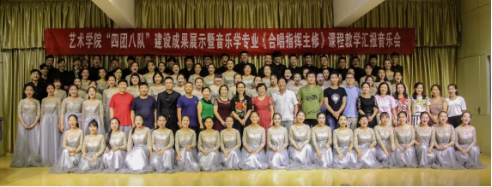 7月9日晚,Beat365中文官方网站“四团八队”建设成果展示暨音乐学专业《合唱指挥主修》课程教学汇报在江北校区1401演艺厅隆重举行。出席此次晚会的嘉宾有兰溪女子合唱团团长张来喜老师、平利爱歌合唱团团长兼指挥贾安桂老师。Beat365中文官方网站副院长鲍丽及Beat365中文官方网站部分老师参加了本次活动。