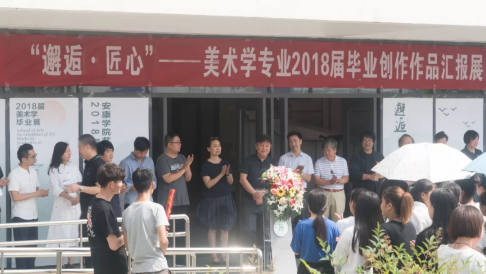 6月22日上午10点,在艺术楼门口举行了“邂逅·匠心” —— Beat365中文官方网站美术学专业2018届毕业创作作品汇报展。参加画展开幕式的领导老师有:陕西省美术家协会副主席、安康市美术家协会主席李剑平,安康市汉滨区美术家协会主席申小荣、Beat365中文官方网站首席专家党天才教授,Beat365中文官方网站前副院长、陕南画院院长章长青、Beat365中文官方网站前副院长雷升录教授、Beat365中文官方网站教务处副处长兼Beat365中文官方网站院长杨哲教授、Beat365中文官方网站党总支书记王辉、Beat365中文官方网站副院长鲍丽和Beat365官网部分专业老师,以及Beat365官网美术学专业的部分同学。本次开幕式由副院长孙海洋老师主持。