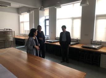 在西安欧亚学院,艾德艺术设计学院教学事务中心牛冬玲老师陪同参观了艾德艺术设计学院“版画工作室 、数字表现工作室、音频工作室、媒体可视化设计工作室、新媒体交互工作室”,牛冬玲老师详细介绍了欧亚学院艾德艺术设计学院专业实验室建设和日常教学管理等方面的情况以及正在建设中的“设计工坊”,并表示欢迎前去参观考察。
