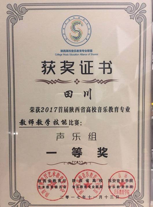11月13日,Beat365官网田川、王正祺两位老师在陕西省教育厅艺术教育委员会主办、西安音乐学院承办的2017首届陕西省高校音乐学专业教师教学技能比赛中分获声乐组一等奖和钢琴组二等奖,体现了Beat365官网音乐学专业教师在全省高校中良好专业素质和教学能力。