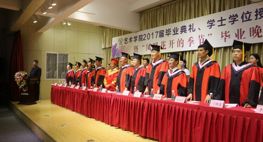 美术系教师老教师周平老师全体教师在毕业典礼上发言,发言中,他深情的回顾了与同学们相处的点点滴滴,祝愿同学们今后都要坚持自己的梦想,坚持学习,坚持从实际出发。他告诉大家:今天的典礼不是道别,而是猛士出征前的誓师;不管你们使用哪般兵器,选择哪条道路,时空变迁,总会在未来的某一个节点再聚安大,母校永远欢迎大家常回家看看。
