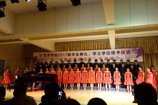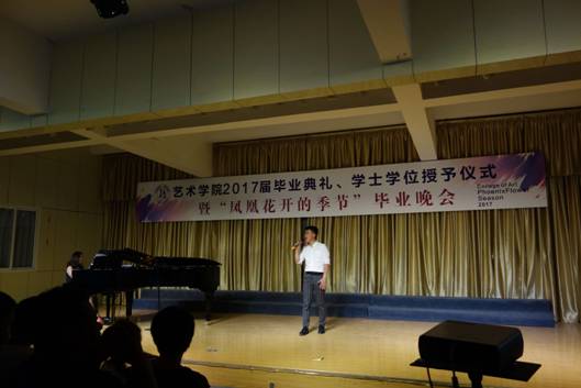 六月注定是一个分别的季节,无论毕业大戏多么的华丽,绚烂过后,他们即将与我们挥手告别。晚会邀请了校友周翰祥为大家演唱了歌曲《凤凰花开的路口》,同学们随着歌声,用复杂的心情告别熟悉的校园,告别昔日的同窗,告别了一段纯真的青春,一段年少轻狂的岁月,一个充满幻想的时代……所有的话语都化作歌声传达出来,在难舍难分的气氛中,教师代表冯宏钊等十几名同志现场为毕业生赠送了小礼品——毕业寄语卡片。