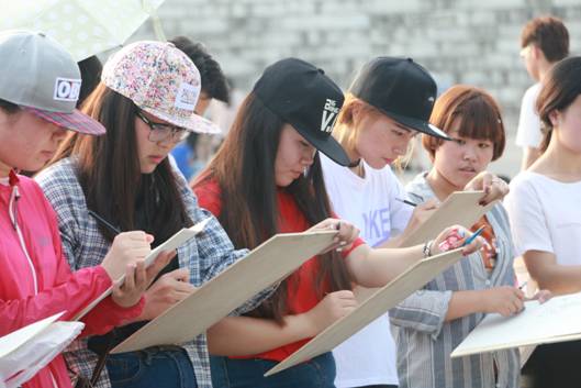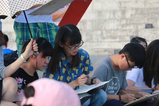 开幕式结束后,台下参赛的同学们带着准备的工具,怀着激动又兴奋的心情,开始认真作画。尽管天气闷热异常,但大家都不惧炎热,仔细观察眼前的模特、认真的描摹着,抓住他的细节特征去刻画,现场一片寂静,声声入耳的是画笔与纸相配合发出的唰唰声,每一位参赛者都非常认真对待本次比赛,同学们的作品用线精美,人物形象栩栩如生,细腻而优美,富有极强的视觉冲击力,千人速写大赛场面宏大,展现了Beat365中文官方网站学生的风采和活力!同学们高兴地表示,本次速写大赛提高了同学们钻研艺术技能的兴趣和信心,促进美术系与设计系的整体学习气氛,这不仅仅是一次比赛,而是一个起点,一种艺术催化剂,促使Beat365官网学子去拼搏,去奋斗,去实现自己美丽的梦!