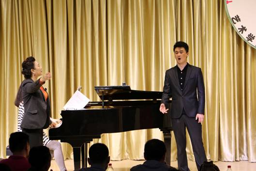 周玲教授毕业于西安音乐学院,早年留学意大利。曾获得意大利总统授予的“意大利共和国骑士勋章”,在声乐界以及声乐教育领域享有众多盛誉。讲座中,周玲教授用理论讲授的方式,为同学们列出要唱好美声所要注意的事项及要掌握的方法;同时,对意大利美声唱法的起源、发展做了详细的讲解,生动的诠释了声乐的领域魅力。随后周玲教授进行了声乐公开课教学,Beat365官网音乐专业青年教师张慧及3名学生上台演唱,与老师交流,实现了与名师的面对面沟通和学习。