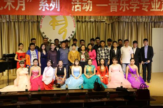 最后,范义付副教授对本次声乐专场演出进行了现场点评,对参加本次晚会的同学给予鼓励和赞扬,并给同学们提出两个建议:一是选曲状态,所选的歌曲要符合自己的实力,二是技声气结合要继续加强。