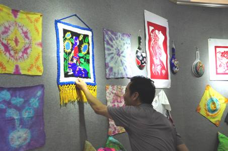 本次展览是在设计专业教师郭秀的精心指导下完成的,是艺术设计专业2012级课程作业,参展学生125人,共计千余幅作品,包括扎染、装饰性剪纸、马勺脸谱、纸藤编织、编织挂毯等创作形式,这些作品充分反映了陕西民间文化的艺术特色,展示了同学们不怕吃苦勇于创新的精神。