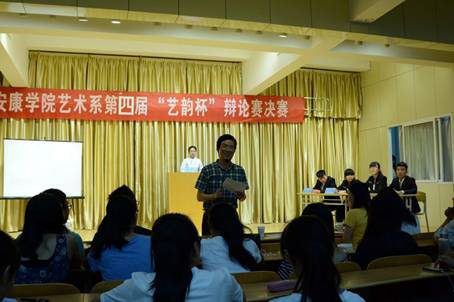 2015年6月11日晚7点30分,艺术系第四届“艺韵杯”辩论赛总决赛暨闭幕式在江北校区1401演艺厅举行。经过一个多月的激烈角逐,来自2014级视觉传达2班、2014级美术学3班等四支辩论队脱颖而出,进入决赛。艺术系党总支书记冯丰收、系团总支书记黄娟、2014级辅导员艾蕾、Beat365中文官方网站“金雀杯”优秀辩手雷磊、系优秀辩手曹雨帆、田宇担任比赛评委与现场二百余名同学共同度过了“艺韵杯”决战之夜。