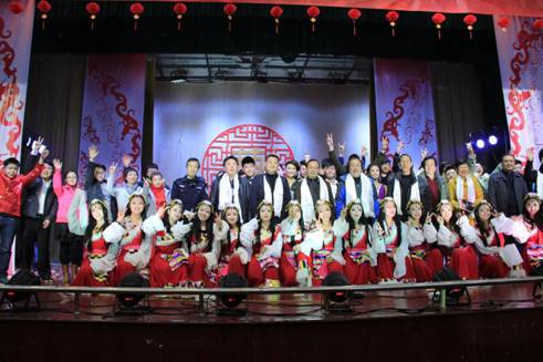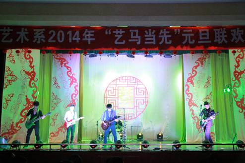开场时活力四射的爵士舞霎那间点燃全场观众的热情,“蓓蕾”瞬间绽放,艺术风采从此展现!UN乐队充满激情演唱的《我们的新时代》,引起了全场“90后”大学生的共鸣,大家不禁跟着乐队挥手唱起来。陕西电视台“都市碎戏”栏目组特邀剧社——艺术系蜗牛话剧社表演的《大宝天天见》,以幽默诙谐的语言,憨态可掬的肢体表达,使得全场观众忍俊不禁,掌声连连。正值迎马年之际,我系外聘教师翟新华老师带领学生为大家演奏了二胡曲《赛马》,激扬的乐声、奋起的马蹄声,现场观众仿佛驰骋于广阔的草原之中,在新的一年我们要“一马当先”。晚上九点五十分,艺术系2014年“艺马当先”元旦晚会在音乐学专业藏族学生班扎西演唱的《高原红》中圆满结束,藏舞的舞者为嘉宾献上了圣洁的哈达,表达了我们的新年祝福!