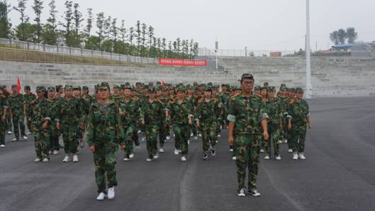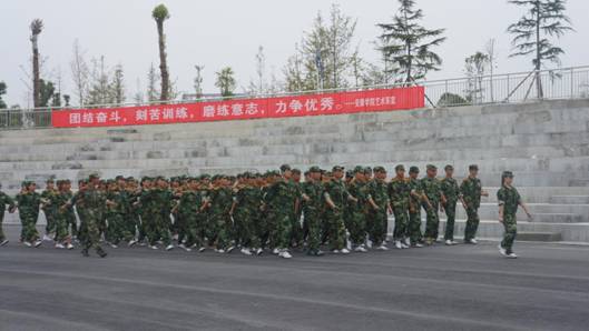 军训中,同学们在教官和指导员王毅老师的带领下,战高温,斗酷暑,刻苦训练,磨练意志,团结奋斗,力争优秀。