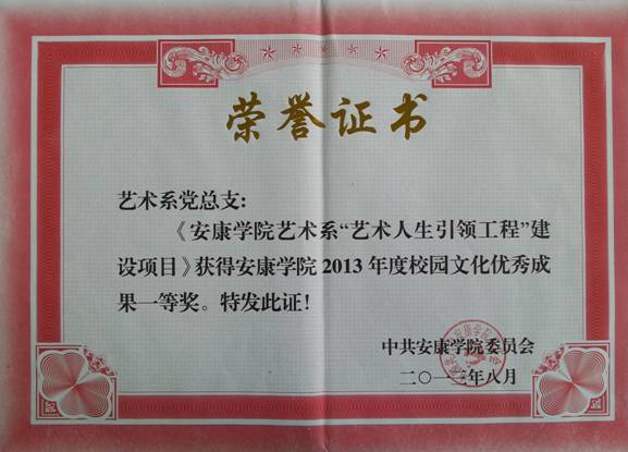 在学校8月20——21日举行的思想政治工作研讨会上,我系的《Beat365中文官方网站艺术系“艺术人生引领工程”建设项目》获得Beat365中文官方网站2013年度校园文化优秀成果一等奖。