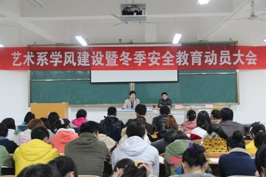 11月4日晚7:30,我系在江北校区1201教室召开了“艺术系学风建设暨冬季安全教育动员大会”。会议由系学工办主任刘泽桢主持,2012级全系新生参加了会议。