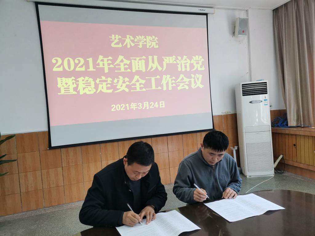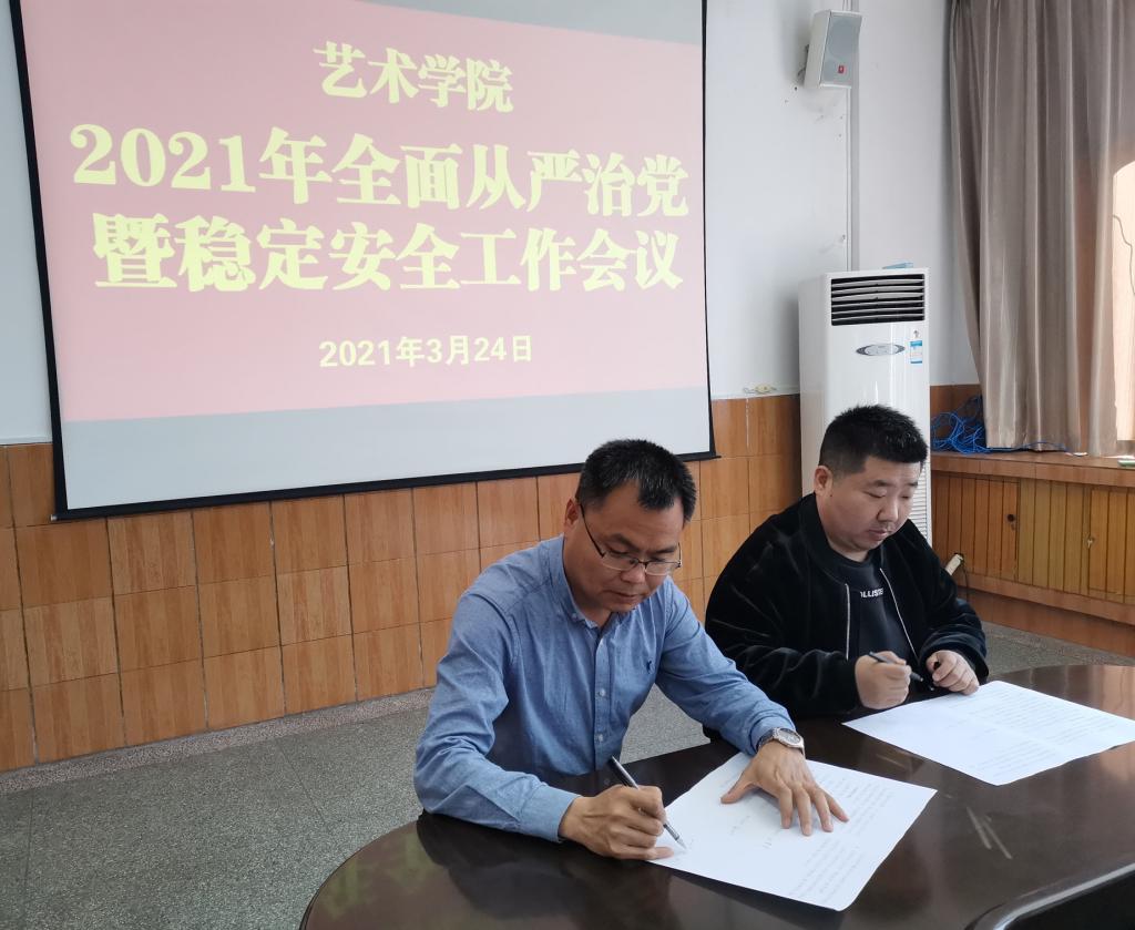 首先,党总支书记樊仁杰传达了学校2021年全面从严治党暨稳定安全工作会议精神。随后,学院领导与相关负责人签订了《2021年Beat365中文官方网站全面从严治党工作责任书》、《2021年Beat365中文官方网站稳定安全工作责任书》。