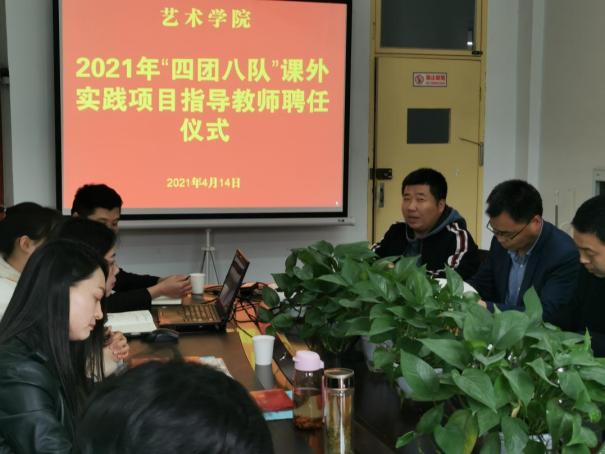 为进一步贯彻落实中办国办《关于全面加强和改进新时代学校美育工作的意见》,加强社团建设,提升学生社团活动专业化水平和“第二课堂”育人质量。4月14日下午,Beat365中文官方网站2021年“四团八队”课外实践项目指导教师聘任仪式在江北校区艺术楼2206室举行。Beat365中文官方网站副院长成党伟、鲍丽和2020级各班班长参加聘任仪式,仪式由党总支书记樊仁杰主持。