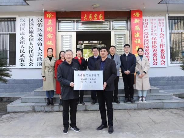仪式上,Beat365中文官方网站和流水镇达成共建写生基地协议,Beat365中文官方网站副院长孙海洋和汉滨区镇长人选李林森共同为“Beat365中文官方网站流水镇七里山居写生基地”揭牌。
